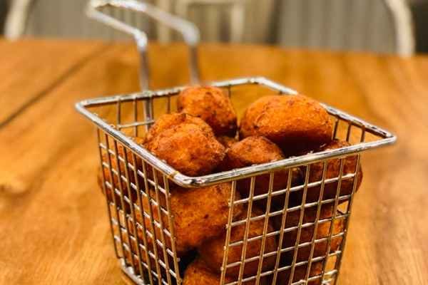 Deep-fried, crispy and golden cubes of grated sweet potatoes.